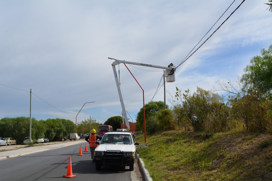 El personal de Obras Públicas y Mantenimiento empezó a colocar las nuevas lámparas LED en Camino de la Cuchilla donde hace unos meses se instalaron 40 nuevas columnas de alumbrado. Posteriormente continuarán en otros sectores de la planta urbana.