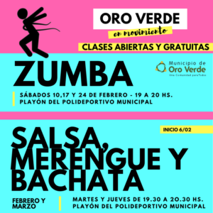 En el marco de la iniciativa Oro Verde en movimiento, el Municipio ofrece opciones para hacer actividad física al aire libre con el objetivo de combatir el sedentarismo. Durante febrero y marzo seguirán las clases abiertas y gratuitas de Salsa, merengue y bachata, y también de Zumba durante febrero.