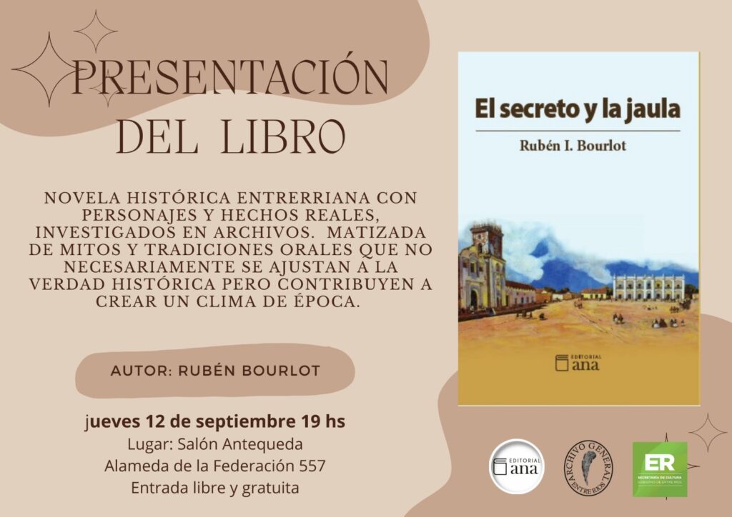 La novela histórica “El secreto y la jaula”, de Rubén I. Bourlot, ha sido recientemente publicada por el sello paranaense Ana Editorial. Esta obra nos sumerge en un relato que entrelaza hechos reales y personajes históricos, resultado de una minuciosa investigación en archivos. Sin embargo, lo que le da un toque único es su nutrida dosis de mitos y tradiciones orales, que si bien no siempre se ajustan estrictamente a la verdad histórica, logran evocar un vívido clima de época.