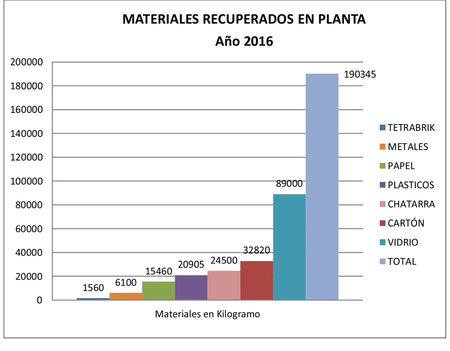 La separación de domiciliaria y la recolección diferenciada posibilitó que la Planta de Recuperación pueda reingresar al circuito económico los materiales que de otro modo descartaríamos. En los últimos doce meses de funcionamiento, se recuperaron 190 toneladas de materiales.