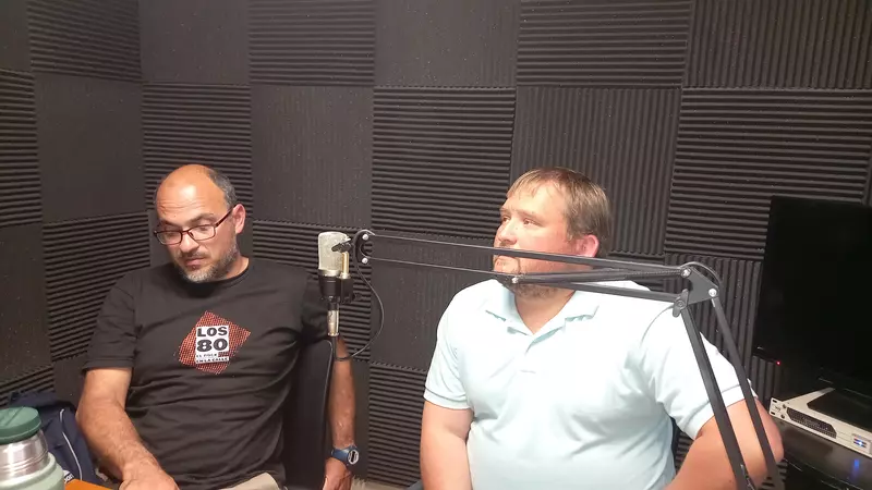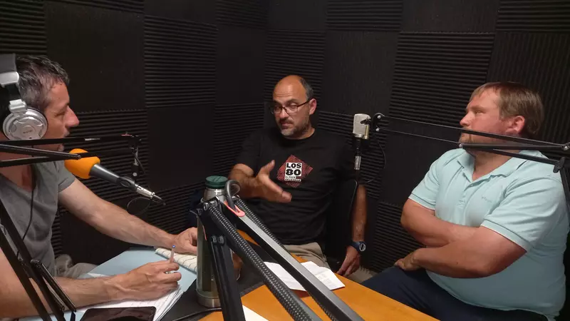 Carlos Retamar y Ernesto Massa, entrevistados Con Buen Tino, en los estudios de la radio