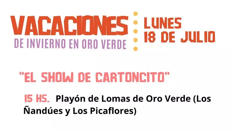 Hoy se encuentra programada la obra de teatro “El Show de Cartoncito” en el Playón de Lomas de Oro Verde (Los Ñandúes y Los Picaflores) a las 15 hs.